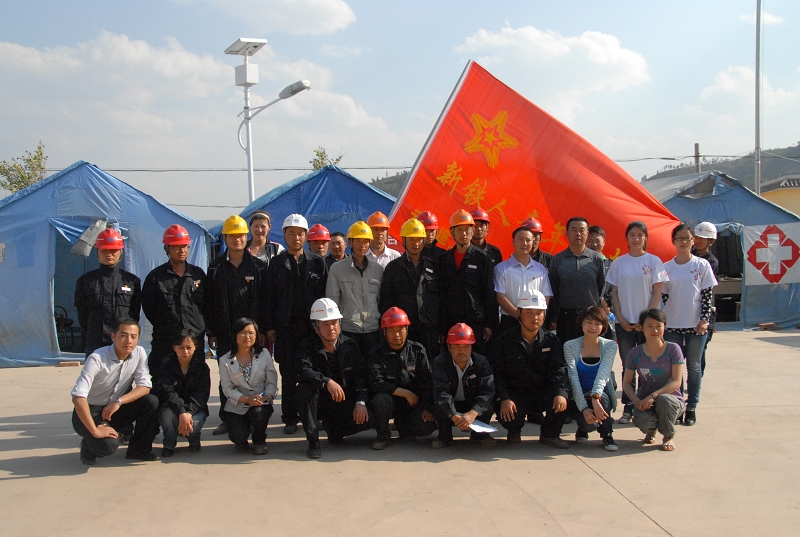 這天下午,集團(tuán)公司團(tuán)委副書記雷棲來到項(xiàng)目部,為項(xiàng)目部進(jìn)行了新鐵人青年突擊隊(duì)的授旗儀式,授旗現(xiàn)場的對面,是災(zāi)民暫時(shí)用來避難的藍(lán)色帳篷,帳篷邊的空地上停著一輛水車,上面寫著“抗旱供水”。到項(xiàng)目駐點(diǎn)的安全生產(chǎn)部副部長楊春華說:“最近氣候干旱,水車是來應(yīng)急的?!?/FONT>