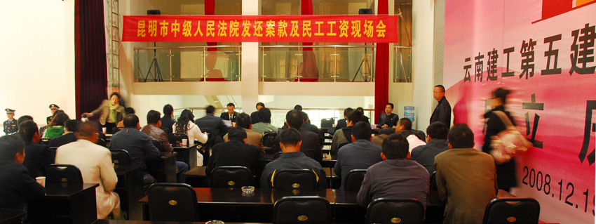 昆明中院在五建現(xiàn)場(chǎng)發(fā)還被拖欠民工工資和工程款