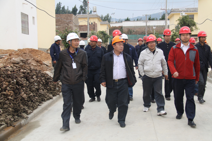 圖為慰問當天楊紅衛(wèi)等領(lǐng)導在項目現(xiàn)場參觀