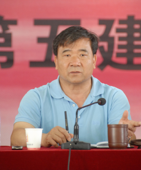 圖為5月10日公司董事長楊福和在第五直管項(xiàng)目部機(jī)構(gòu)調(diào)整動員會上講話