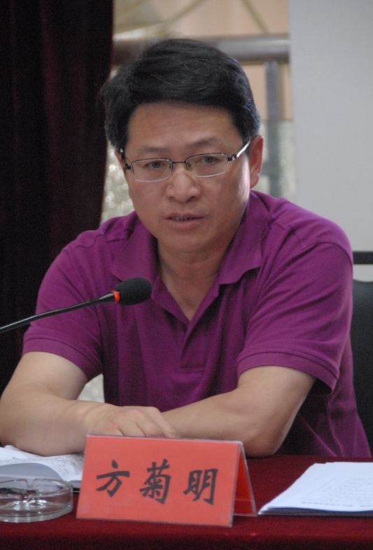 圖為公司總經(jīng)理方菊明在會上講話