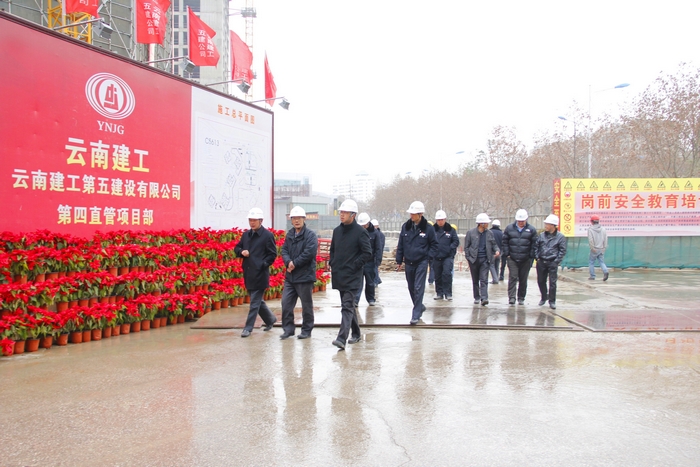 2013年1月10日上午8:30分,云南省安全生產(chǎn)委員會(huì)專(zhuān)家組成員一行四人到第四直管部文化空間項(xiàng)目視察指導(dǎo)工作。集團(tuán)安全總監(jiān)段益慶及相關(guān)部門(mén)人員,公司總工程師焦倫杰、安全總監(jiān)劉路明等陪同視察。