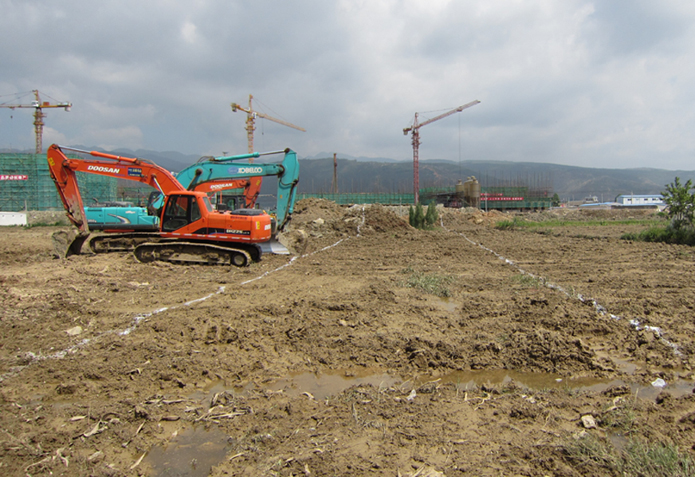 項(xiàng)目部成立后,先后測出1至5號地塊方格網(wǎng),積極組織機(jī)械設(shè)備和人員入場,推進(jìn)幾個(gè)地塊的場地平整工作。