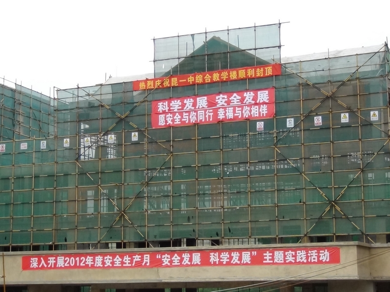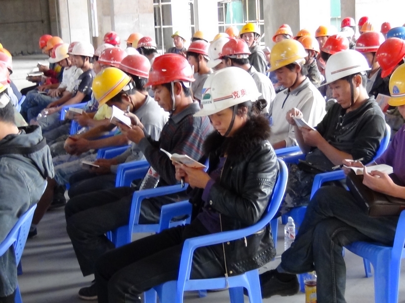 “安全是自己的事,與他人無關(guān)”、“什么是安全?不發(fā)生事故就是安全”、“發(fā)生什么樣的事故與從事什么樣的職業(yè)有關(guān)”…… 2012年6月14日中午,手拿《建筑業(yè)農(nóng)民工入場安全知識必讀》的180多名操作人員和管理人員在昆一中項目部,與昆明市安監(jiān)站的周繼明老師一起學(xué)習(xí)了上述的安全知識。
