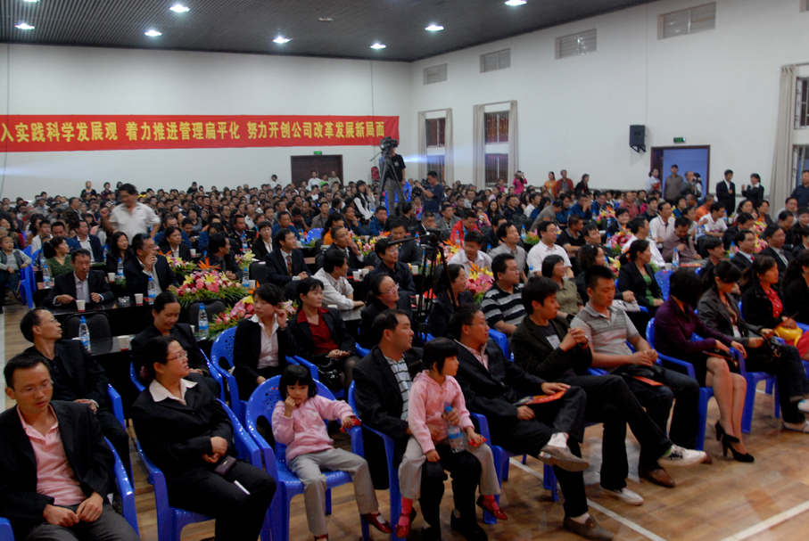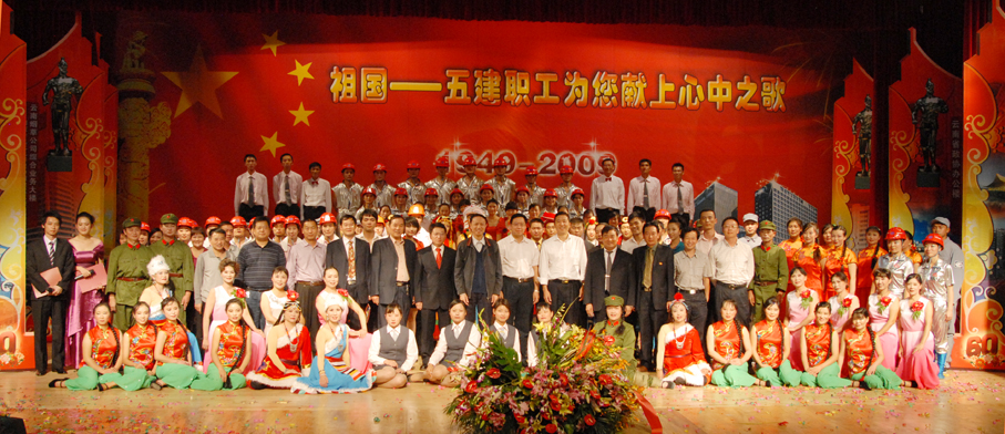 云南建工第五建設(shè)有限公司于9月28日晚在公司禮堂隆重舉辦以《祖國――五建職工為你獻上心中的歌》為主題的文藝晚會,慶祝中華人民共和國建立六十周年。來自公司和基層22個單位的700多 名職工,共演出了19個節(jié)目,以飽滿的熱情祝福偉大的社會主義祖國,用嘹亮的歌聲抒發(fā)對偉大祖國的熱愛,以昂揚的斗志表達實現(xiàn)公司跨越式發(fā)展的決心。云南建工集團總公司董事長、黨委書記納杰,副書記、紀委書記張戰(zhàn)國,工會主席陳文雙,集團前黨委書記張平濤等領(lǐng)導(dǎo)和來自集團內(nèi)外的嘉賓和五建干部職工一起觀看了演出,并和大家一起放聲合唱《歌唱祖國》。