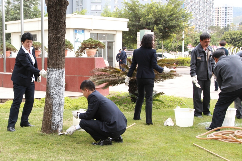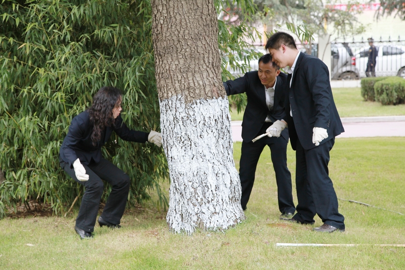 •     2012年11月7日下午,物業(yè)管理公司全體員工為公司機(jī)關(guān)的綠化樹(shù)刷石灰水,刷好的樹(shù)木遠(yuǎn)遠(yuǎn)看去,整齊而又漂亮。物業(yè)管理公司將在正常開(kāi)展工作的情況下,對(duì)公司機(jī)關(guān)及小團(tuán)山生活區(qū)的綠化樹(shù)進(jìn)行粉刷行動(dòng),通過(guò)這次行動(dòng)來(lái)美化職工生活區(qū),喜迎黨的十八大勝利召開(kāi)。