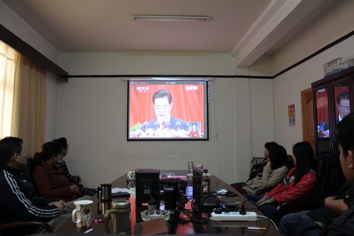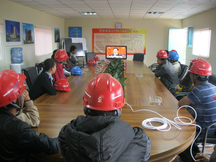 第二直管部龍陵保障性住房項目部15名職工收看十八大開幕式