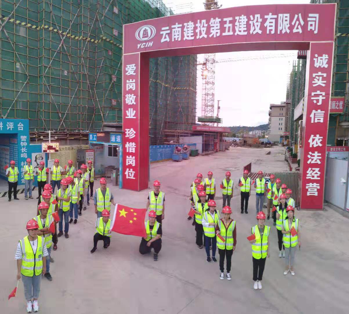 7月14日,傍晚,普洱,天氣多云。普洱大茶都一期項(xiàng)目現(xiàn)場(chǎng)的門(mén)口,歌聲嘹亮,參與項(xiàng)目建設(shè)的五〇四、五〇五、第三安裝直管部管理人員,在公司工會(huì)主席冷蕊的帶領(lǐng)下,一同唱響愛(ài)國(guó)歌曲。 莊嚴(yán)的《義勇軍進(jìn)行曲》、抒情的《我和我的祖國(guó)》表達(dá)了對(duì)祖國(guó)70歲生日的祝福和建投人愛(ài)國(guó)、愛(ài)企、愛(ài)家的深厚情懷,并齊聲呼喊“祖國(guó),生日快樂(lè)!”“祖國(guó),祝你繁榮富強(qiáng)!”,同時(shí),也自豪地唱起了《建投之歌》,以建…