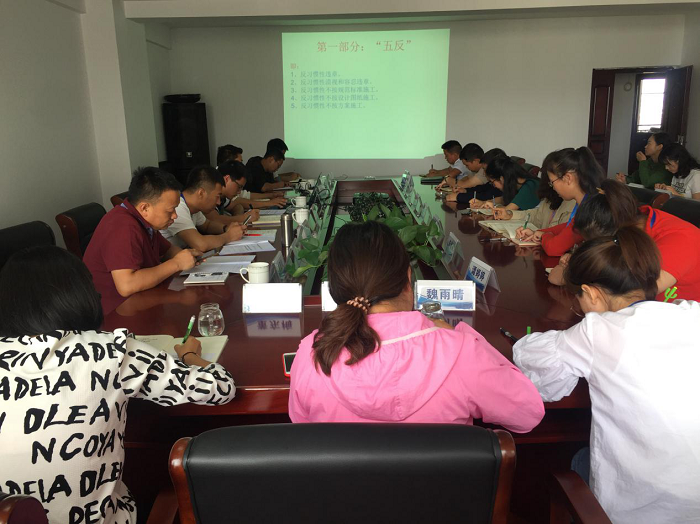 6月17日,圍繞“防風(fēng)險、除隱患、遏事故”安全生產(chǎn)月主題,深入促進(jìn)直管項目部安全生產(chǎn)形勢持續(xù)穩(wěn)定,第九直管項目部經(jīng)理童秀承帶領(lǐng)黨員、二線職工干部學(xué)習(xí)安全生產(chǎn)“五反一加強(qiáng)”專項治理文件,此次黨課共計30人參加。 會議開始,童秀承帶頭手抄“五反一加強(qiáng)”具體內(nèi)容和條文釋義。“看百遍不如手抄一遍”,通過逐字逐句地抄寫文件內(nèi)容,進(jìn)一步加深全體職工對“五反一加強(qiáng)”內(nèi)容的領(lǐng)悟理解,提高安全生產(chǎn)...