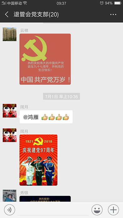 公司退休黨支部在微信群中開(kāi)展七一主題活動(dòng)