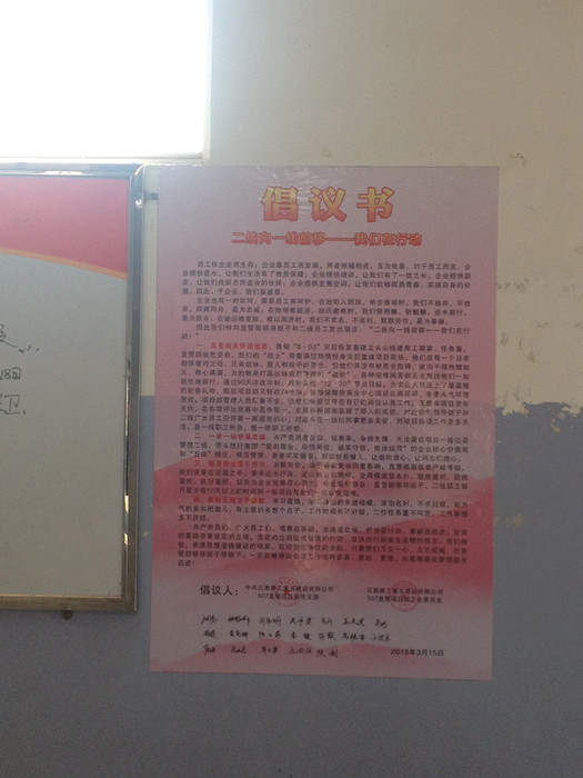 3月15日,五〇七直管項目部在深入開展公司二屆四次職代會精神宣貫、學(xué)習(xí)的過程中,黨支部聯(lián)合工會,向直管部領(lǐng)導(dǎo)班子和二線員工發(fā)出了“二線向一線前移——我們在行動”的倡議書。 倡議書向大家提出:一要“息息相關(guān)懷德感恩”,領(lǐng)導(dǎo)班子和二線廣大員工應(yīng)懷著一顆感恩的心,對戰(zhàn)斗在一線的同事更多關(guān)愛,對項目各項工作更多關(guān)注,急一線職工所急...