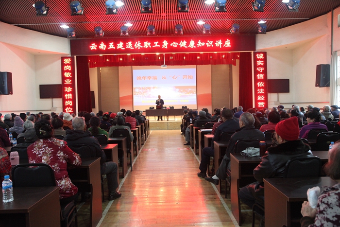 12月29日,在2016年即將到來之際,公司誠邀了云南省演講學(xué)會常務(wù)理事、國家二級心理咨詢師朱景忠老師,為退休職工上了一堂身心健康知識講座,現(xiàn)場共有210多名退休職工參加。 朱景忠老師以晚年幸福從“心”開始為主題,以幽默風(fēng)趣、通俗易懂的語言和圖文并茂的形式,從老年人要調(diào)整心態(tài),找準(zhǔn)位置;少些抱怨,多些寬容;克制憤怒,與人為...