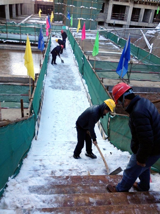 12月14昆明遇到罕見的急速降溫天氣,第八直管項目部施工的長水航城項目部由于地處郊區(qū),周圍空曠,工地和生活區(qū)的平均氣溫要低于市區(qū),為保證磚砌體工期按時推進,第八直管部長水航城項目部的全體管理人員一早就冒著嚴寒,分區(qū)分組打掃工作區(qū)內厚厚的積雪。 管理人員穿著嚴實的冬衣,赤手拿著鏟子等工具細心的清掃著工地的每一個角落...