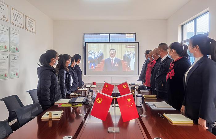 10月16日上午,中國(guó)共產(chǎn)黨第二十次全國(guó)代表大會(huì)將在北京召開,這是黨和國(guó)家政治生活中的一件大事。五〇一組織班子成員、項(xiàng)目經(jīng)理、科室負(fù)責(zé)人及在建項(xiàng)目職工共計(jì)56人,其中,黨員同志17名,認(rèn)真收聽收看大會(huì)直播節(jié)目。五〇一直管部的黨員干部、職工同志們整齊著裝、精神抖擻,聚精會(huì)神收看開幕會(huì)直播。大家邊聆聽大會(huì)報(bào)告,邊認(rèn)真記錄報(bào)告要點(diǎn)。也和屏幕里大會(huì)現(xiàn)場(chǎng)一樣,奏唱國(guó)歌,每當(dāng)屏幕里傳出熱烈的掌聲時(shí),大家也發(fā)自…