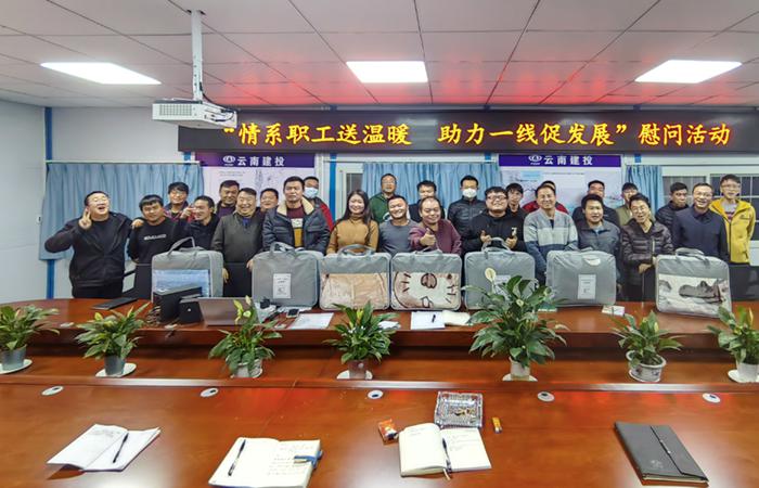 1月4日晚,五〇二直管部工會到到開遠(yuǎn)市小龍?zhí)赌隙礈细囊乒こ涕_展“情系職工送溫暖 助力一線促發(fā)展”慰問活動(dòng),深入基層、深入項(xiàng)目一線,為職工送去直管部的溫暖與關(guān)懷。慰問時(shí),直管部書記將毛毯等慰問品一一送到同志們的手里,并叮囑大家,一是春節(jié)臨近,時(shí)至寒冬,大家在工作生活中要注意防寒保暖,‘身體是革命的本錢’,你們的健康是我們最大的欣慰。二是年關(guān)將至,大家要守好2022年的最后一關(guān),合理安排年前的施工任務(wù)…