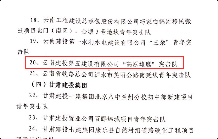 11月18日,西南、西北八?。▍^(qū))建筑業(yè)第二十五屆“貢獻(xiàn)杯”聯(lián)賽公布先進(jìn)集體、先進(jìn)個(gè)人名單,五〇一直管部空港項(xiàng)目“高原雄鷹青年突擊隊(duì)”榮獲“優(yōu)秀青年突擊隊(duì)”稱(chēng)號(hào)。五〇一直管部空港項(xiàng)目“高原雄鷹突擊隊(duì)”自項(xiàng)目開(kāi)工組建以來(lái),突擊隊(duì)隊(duì)員思想進(jìn)步,責(zé)任心強(qiáng),業(yè)務(wù)技術(shù)過(guò)硬。大力弘揚(yáng)不怕苦、不怕累、敢打惡仗、善打硬仗、能打勝仗的高原鐵軍精神,積極融入項(xiàng)目生產(chǎn)中,充分發(fā)揮青年突擊隊(duì)作用,過(guò)程中嚴(yán)密組織,精心管理…