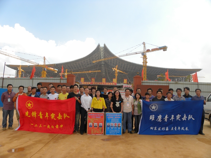 9月19日上午,集團(tuán)公司團(tuán)委副書(shū)記雷棲、公司團(tuán)委副書(shū)記楊春華等聯(lián)袂到公司新機(jī)場(chǎng)直管部為東、西兩個(gè)施工區(qū)的青年人舉行 “青年突擊隊(duì)”授旗儀式,這標(biāo)志著新機(jī)場(chǎng)直管部的兩支青年突擊隊(duì)——雛鷹隊(duì)和先鋒隊(duì)正式成立。 雛鷹隊(duì)得名來(lái)自于航站樓外觀,隊(duì)員為東施工區(qū)18名青年人。突擊口號(hào)為“樹(shù)東區(qū)形象,展青年風(fēng)采”。先鋒隊(duì)隊(duì)員為西施工區(qū)20名青年,突擊口號(hào)“一二三一...