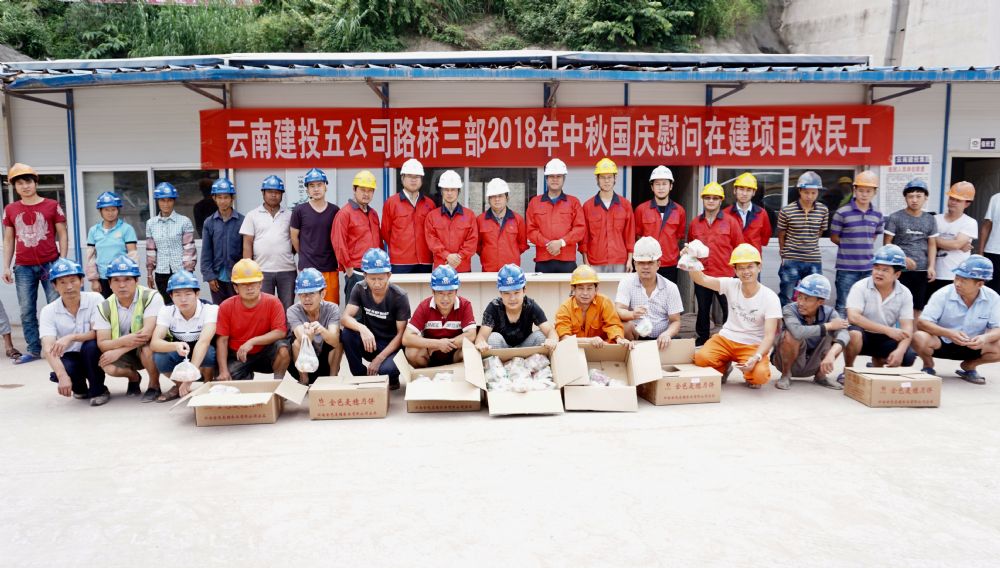 9月21日,在中秋國(guó)慶“雙節(jié)”來(lái)臨之際,由路橋三部領(lǐng)導(dǎo)班子、各部門負(fù)責(zé)人組成的慰問小組對(duì)在建項(xiàng)目進(jìn)行中秋、國(guó)慶“雙節(jié)”慰問活動(dòng),向仍然奮戰(zhàn)在一線的農(nóng)民工朋友致以節(jié)日的問候,并將月餅送到農(nóng)民工朋友手中,讓大家感受到濃濃的節(jié)日氛圍。 獨(dú)在他鄉(xiāng)為異客,每逢佳節(jié)倍思親。小小的月餅不僅飽含了直管部對(duì)農(nóng)民工濃濃的愛心和關(guān)懷,使他們感受到 “家”的溫暖,也進(jìn)一步促進(jìn)了直管部與勞務(wù)隊(duì)伍之間的溝通...