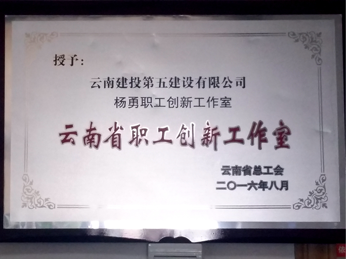 公司技術中心被云南省總工會授予云南省職工“創(chuàng)新工作室”榮譽