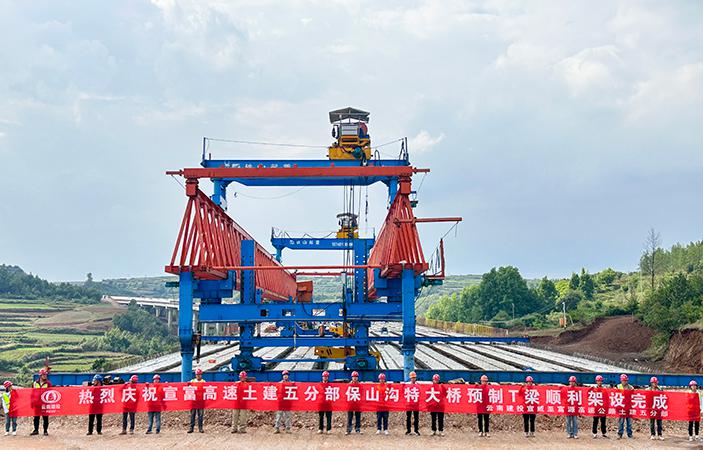 宣富高速公路項目五分部完成保山溝特大橋全部T梁架設(shè)工作