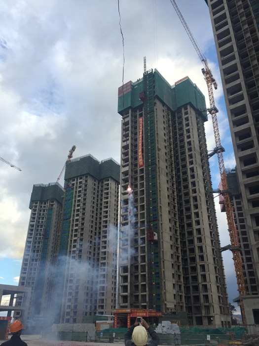 11月8日上午,公司五〇五直管項(xiàng)目部施工的滿江?怡景尚居土建主體工程施工第二標(biāo)段3棟高層全部順利封頂。 大理滿江?怡景尚居工程為一類高層住宅小區(qū),由3棟33層及一層地下室的住宅及3棟一層商鋪組成,總建筑面積70488平方米,其中3棟主樓面積為58968.72平方米,高度為104.15米。工程合同工期660天,于2015年1...