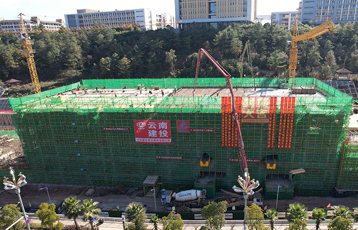 百日攻堅(jiān) | 云南技師學(xué)院教育強(qiáng)國工程實(shí)訓(xùn)用房(G-3、G-4、G-5)建設(shè)項(xiàng)目G-4實(shí)訓(xùn)樓主體結(jié)構(gòu)順利封頂