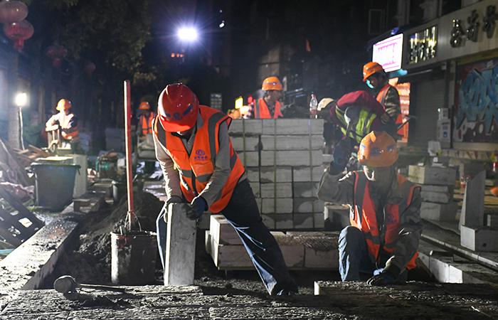 11月15日晚,翠湖西岸,倉園巷內(nèi),一片燈火通明。工人搬運(yùn)石材、拌合灰漿、鋪設(shè)地磚,來來往往,項(xiàng)目建設(shè)熱火朝天。這里是公司路橋二部五華區(qū)2023年老舊小區(qū)及周邊配套基礎(chǔ)設(shè)施提升改造項(xiàng)目倉園巷段。為了確保翠湖環(huán)路雨污分流施工期間倉園巷道路正常通行,項(xiàng)目部挑燈夜戰(zhàn)搶進(jìn)度,連續(xù)多個(gè)夜晚加班加點(diǎn),成功搶通倉園巷道路石材鋪裝工作面。倉園巷車行道使用長60厘米,寬30厘米,高15厘米的攢路面鋪地石,單塊重達(dá)7…