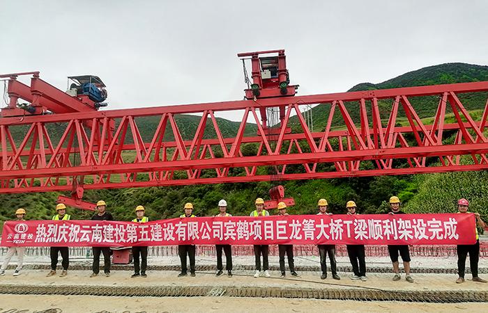 賓鶴高速八工區(qū)巨龍箐大橋雙幅梁板架設完成