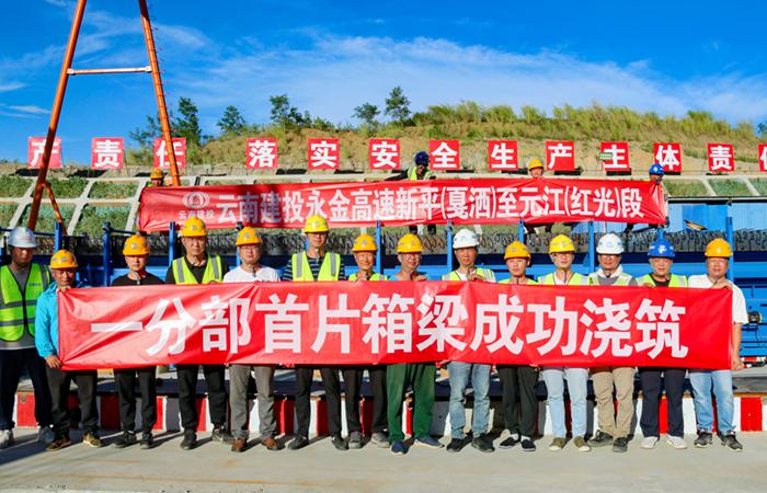 永金高速一分部首片預(yù)制箱梁順利澆筑完成