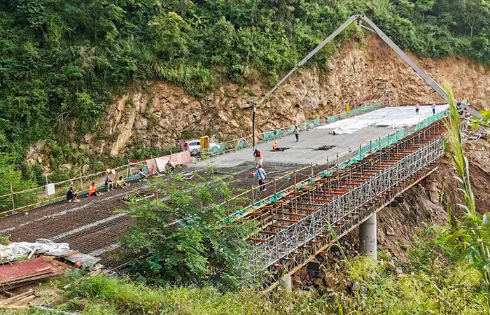 • 10月6日,元綠高速二分部太平寨2號大橋現(xiàn)澆箱梁澆筑工作順利完成?,F(xiàn)澆箱梁施工2021年春節(jié)后復工開始進行,因現(xiàn)場橋址地形陡峭,呈“V”字型,經(jīng)多方技術(shù)人員研究探討后決定采用復合式支架技術(shù)完成上部結(jié)構(gòu)施工。在施工過程中,項目部極積與上級單位溝通解決統(tǒng)供材料、農(nóng)民工工資問題,與供應(yīng)商協(xié)商保障水泥、砂、石等原材料供應(yīng),在高溫、高濕的惡劣環(huán)境下,項目部全體人員克服重重困難,于2021年6月初完成右幅現(xiàn)澆…