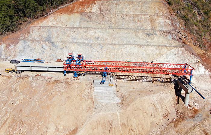 施鏈高速二分部白巖子1號大橋首梁成功架設(shè)