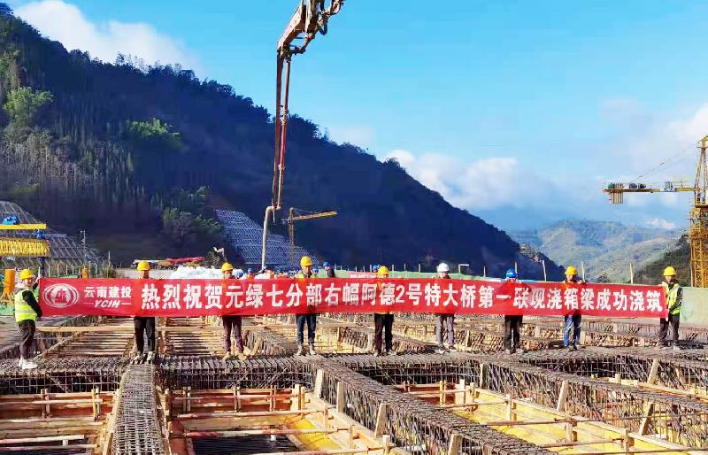 元綠高速右幅阿德2號特大橋第一聯(lián)現(xiàn)澆箱梁澆筑完成