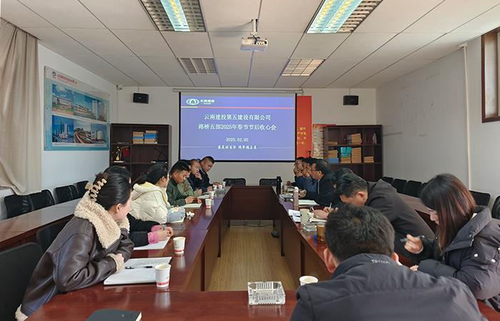 2月5日,路橋五部組織召開2025年春節(jié)后收心會,安排部署近期重點工作,統(tǒng)一思想、凝聚共識,確保今年工作開好局、起好步。直管部班子成員、在昆項目經(jīng)理、各科室負(fù)責(zé)人及科員共20人參加會議。會議傳達(dá)了集團、公司《關(guān)于做好“春節(jié)”節(jié)后建設(shè)工程項目復(fù)工復(fù)產(chǎn)工作的通知》《關(guān)于印發(fā) 2025 年春節(jié)節(jié)后在建項目復(fù)工復(fù)產(chǎn)方案的通知》等文件精神。會議要求,一是全體職工要明確工作職責(zé)和工作目標(biāo),迅速從節(jié)日氛圍中走出…