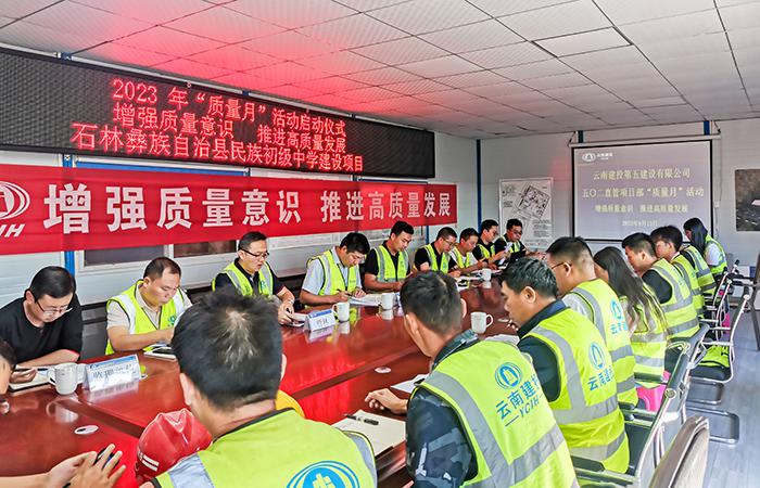 9月13日上午,五〇二直管項目部在石林彝族自治縣民族初級中學(xué)建設(shè)項目組織召開了以“增強質(zhì)量意識 推進高質(zhì)量發(fā)展”為主題的2023年“質(zhì)量月”活動啟動會,直管部班子成員及各科室負責(zé)人、建設(shè)單位代表、監(jiān)理單位代表出席此次啟動大會。會議要求,一是要充分認識“質(zhì)量月”活動的重要意義,充分運用責(zé)任體系建立、質(zhì)量風(fēng)險分析等質(zhì)量管理手段,全面構(gòu)建質(zhì)量管理體系和高效運行機制,切實提高在建項目人員質(zhì)量管理素質(zhì),提升…
