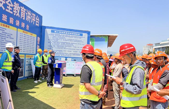 4月11日上午,五華區(qū)金鼎數(shù)字產(chǎn)業(yè)園(一期)項(xiàng)目聯(lián)合虹山派出所、黃土坡社區(qū)開展“普法強(qiáng)基”進(jìn)項(xiàng)目活動(dòng),項(xiàng)目部管理人員及所有工人共計(jì)80余人參加。活動(dòng)中,虹山派出所所長郭強(qiáng)結(jié)合真實(shí)案例,耐心細(xì)致地向工人們講解了防范電信網(wǎng)絡(luò)詐騙、賭博、吸毒、道路交通安全、農(nóng)民工實(shí)名制等方面的法律法規(guī),引導(dǎo)工人提高自身法律意識(shí)和安全防范意識(shí),遠(yuǎn)離不法行為和違法犯罪活動(dòng)。副所長陸永鋒運(yùn)用通俗易懂的語言對電信網(wǎng)絡(luò)詐騙的作案…