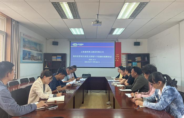 6月7日下午,五〇四直管項目部黨支部在建發(fā)曦城項目會議室開展端午節(jié)前廉潔談話,班子成員、在昆項目經(jīng)理、科室負責人及項目部管理人員共計31人參會。會議傳達學習了《公司黨委關(guān)于印發(fā)開展違規(guī)吃喝問題專項整治行動方案的通知》《公司黨委關(guān)于印發(fā)開展違反社會治安管理秩序問題專項整治行動方案的通知》《云南省國有企業(yè)反商業(yè)賄賂監(jiān)管辦法》等文件要求。會議要求,一要堅決杜絕“節(jié)日腐敗”,嚴防“四風”問題反彈,帶頭弘揚…