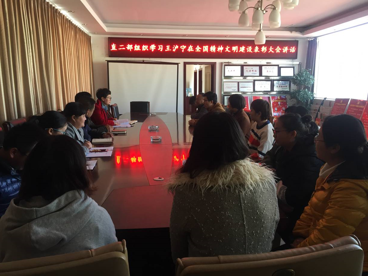 12月25日,直二部組織班子成員、項目經(jīng)理及全體二線人員共計17人在直管部會議室集中學習王滬寧同志在全國精神文明建設(shè)表彰大會上的講話精神。 黨支部書記王敏帶領(lǐng)大家對王滬寧同志在全國精神文明建設(shè)表彰大會上的講話進行了全文學習,使大家了解了5年來,社會主義精神文明建設(shè)取得的歷史性成就,在新時代抓好精神文明建設(shè)的重要性,目前的首...