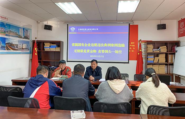 11月17日下午,第四直管項(xiàng)目部黨支部組織所有在昆人員學(xué)習(xí)省屬國(guó)有企業(yè)違紀(jì)違法典型案例選編,共7人參會(huì)。會(huì)議由公司總經(jīng)理助理、黨支部書記趙麟主持,學(xué)習(xí)選編第一篇內(nèi)容,會(huì)上結(jié)合公司法律防范典型案例匯編進(jìn)行講解,通過利用身邊事來提醒身邊人,對(duì)于黨員干部而言,應(yīng)當(dāng)自覺看中事業(yè),看淡名利。工作中應(yīng)明確自身崗位職責(zé),堅(jiān)守初心。趙麟要求各黨員職工:一是把自己擺進(jìn)去自省自警,切勿成為“片中人”;二是提高思想意識(shí)…