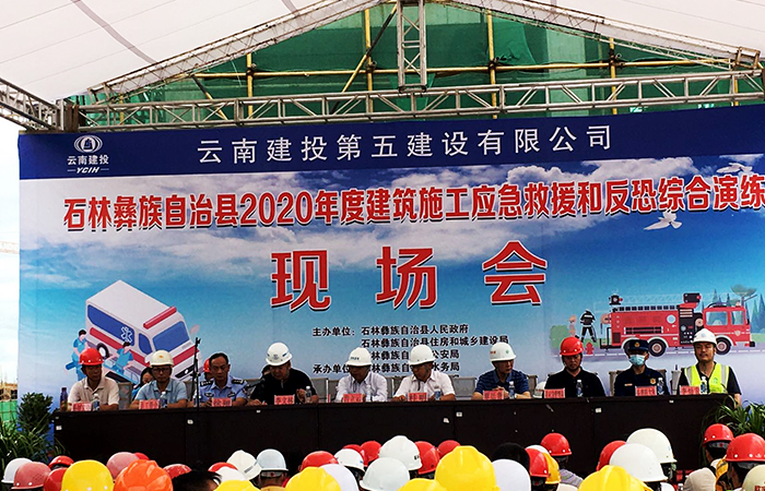 7月16日下午,由石林彝族自治縣人民政府、住房和城鄉(xiāng)建設(shè)局、公安局主辦,公司第六直管部承辦的石林縣2020年度建筑施工應(yīng)急救援和反恐綜合演練在石林縣魚龍水庫工程天生橋村移民安置房建設(shè)工程第三標(biāo)項(xiàng)目舉行。昆明市建設(shè)工程質(zhì)量安全監(jiān)督管理總站房建處處長覃廷貴,石林縣主管部門領(lǐng)導(dǎo)出席活動(dòng)。石林縣15家施工企業(yè)代表,48個(gè)在建項(xiàng)目甲方代表、項(xiàng)目經(jīng)理、監(jiān)理、專職安全員等共計(jì)200余人參...