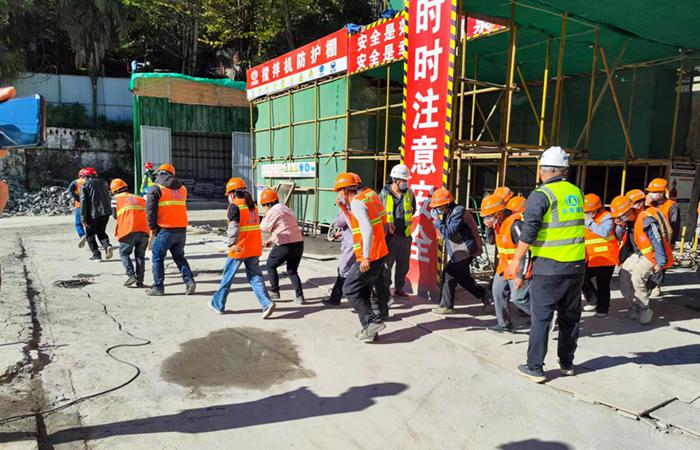 11月9日上午,五〇二直管項(xiàng)目部在貢山縣“美麗縣城”建設(shè)PPP項(xiàng)目貢山縣群眾文化活動(dòng)中心建設(shè)項(xiàng)目開展主題為“抓消防安全,保高質(zhì)量發(fā)展”的消防應(yīng)急演練活動(dòng),貢山縣安監(jiān)站、縣住建局相關(guān)人員觀摩此次演練。演練活動(dòng)制定了演練方案,首先由項(xiàng)目部安全員組織現(xiàn)場工人學(xué)習(xí)相關(guān)消防知識(shí),并詳細(xì)介紹建筑工地防火、滅火、消防安全管理、如何疏散逃生等常識(shí),重點(diǎn)強(qiáng)調(diào)了如何正確使用滅火器,隨后進(jìn)行了現(xiàn)場滅火及發(fā)生火災(zāi)逃生演練…